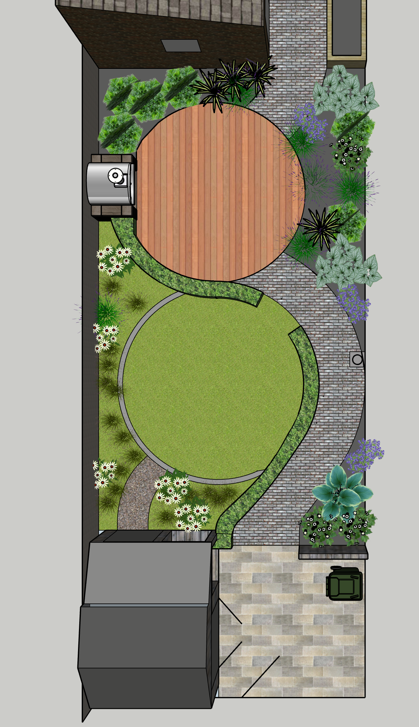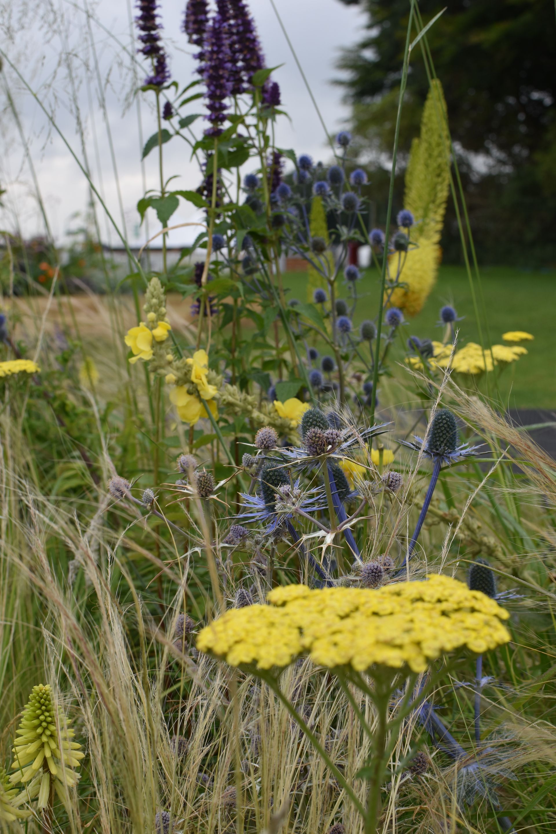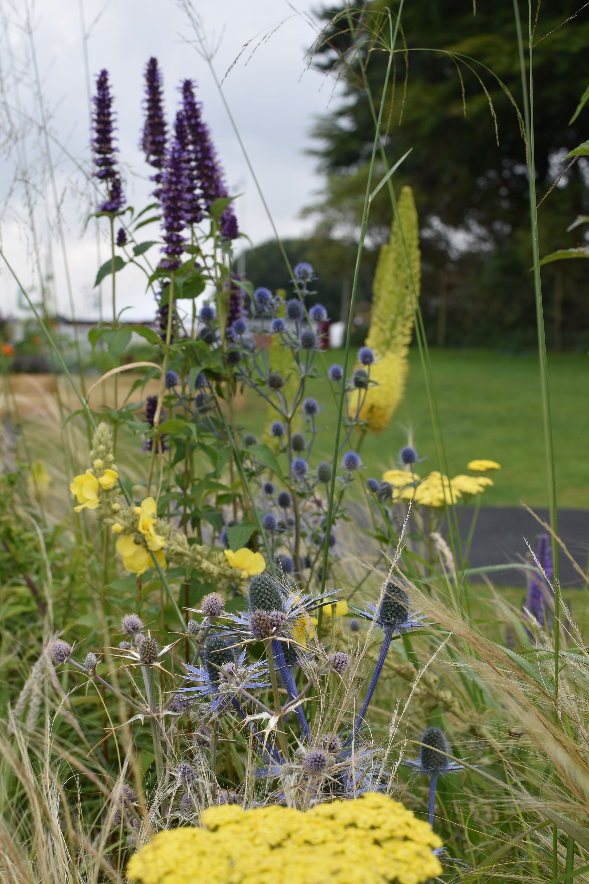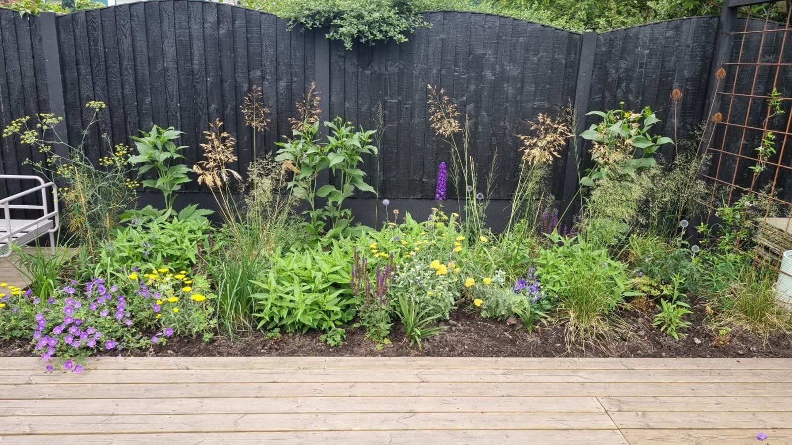 This border is moist clay soil with occasional flooding. Its in semi shade, but there are lots of plants tat think its a lovely spot. Here you can see Hellebores, Brunnera and Astrantia combined with Dryopteris ferns, Actaea simplex ,Aconitum arendsii and Libertia chiliensis. They take you through the season with plenty of different textures, foliage colour and flowers.