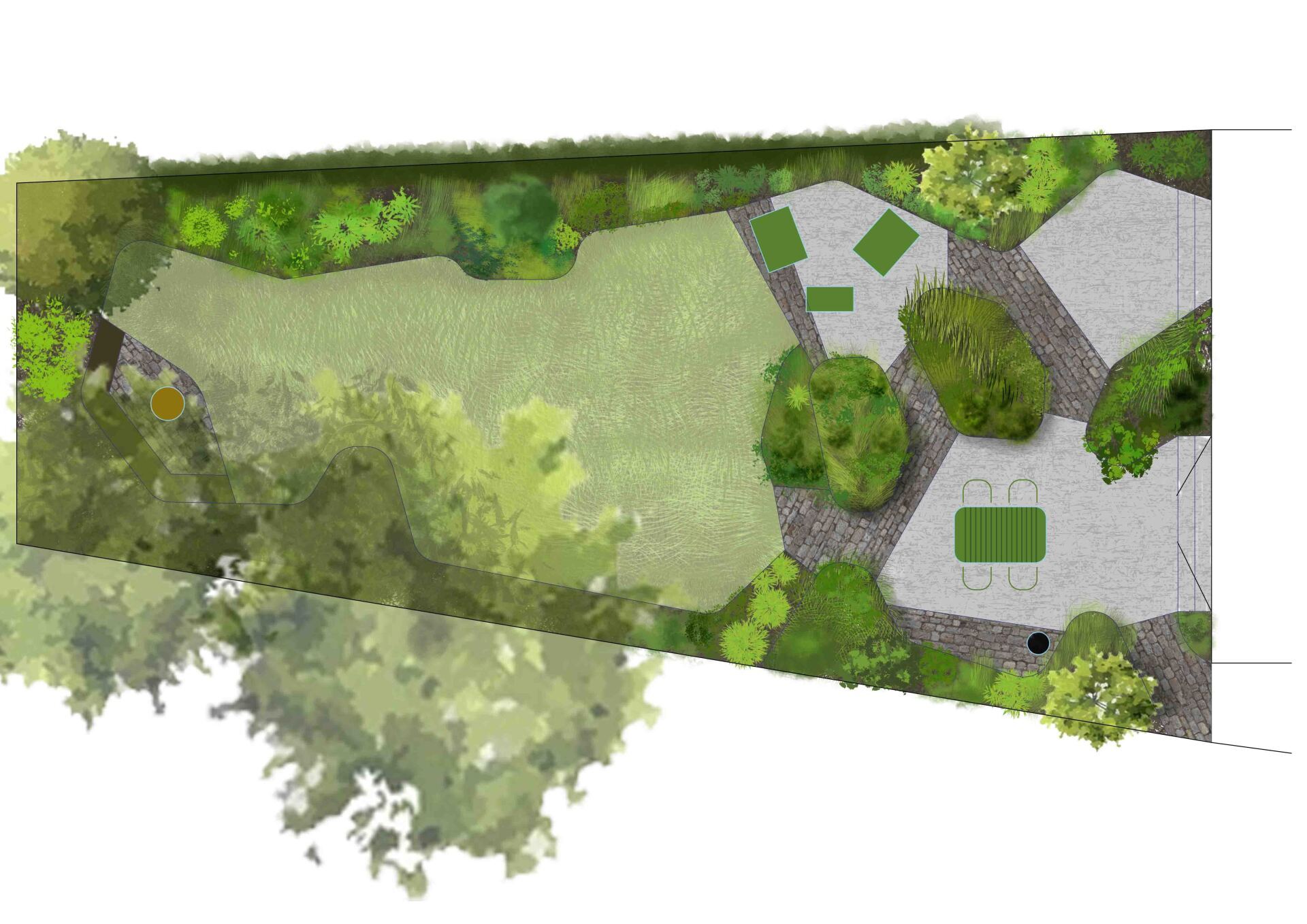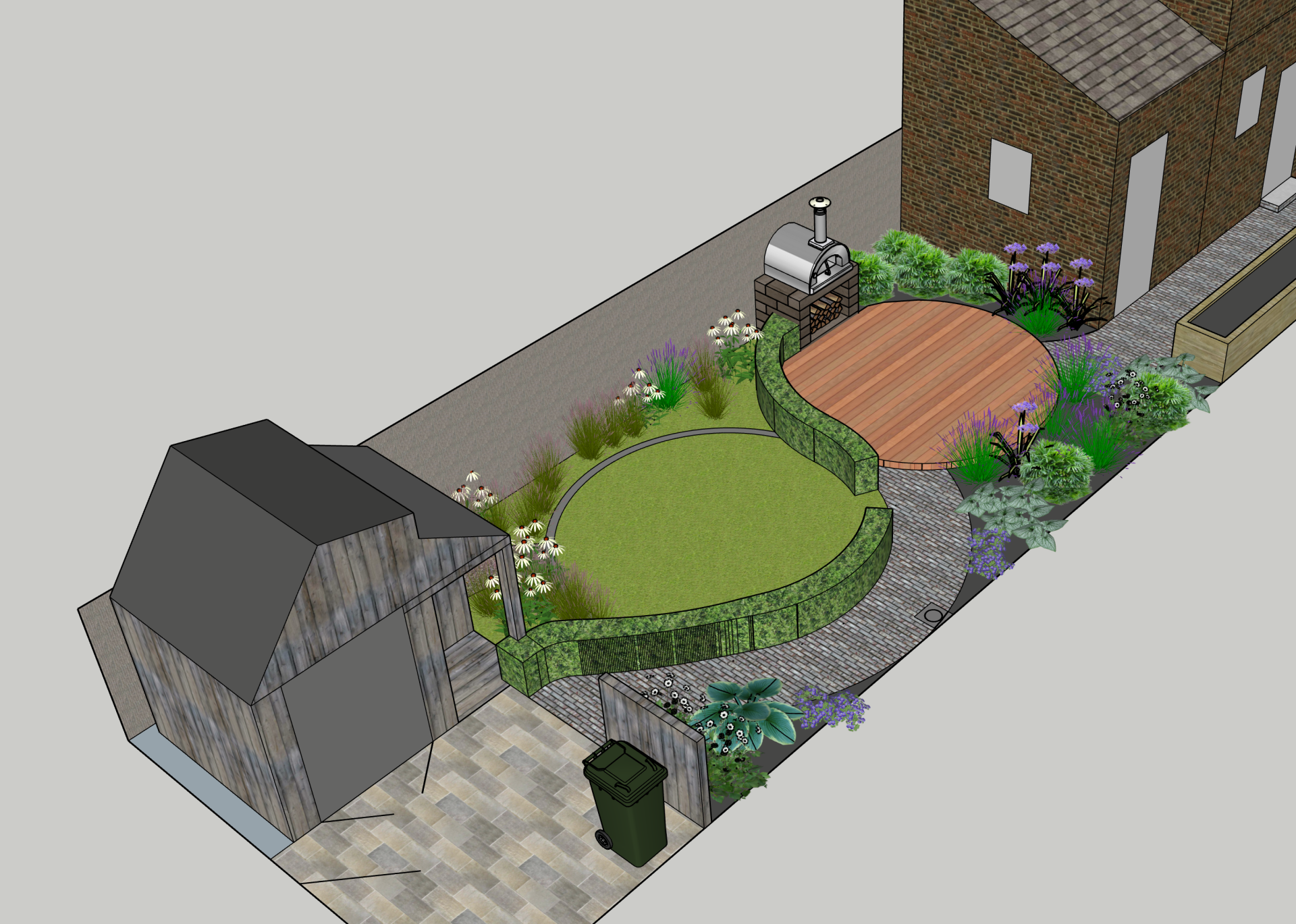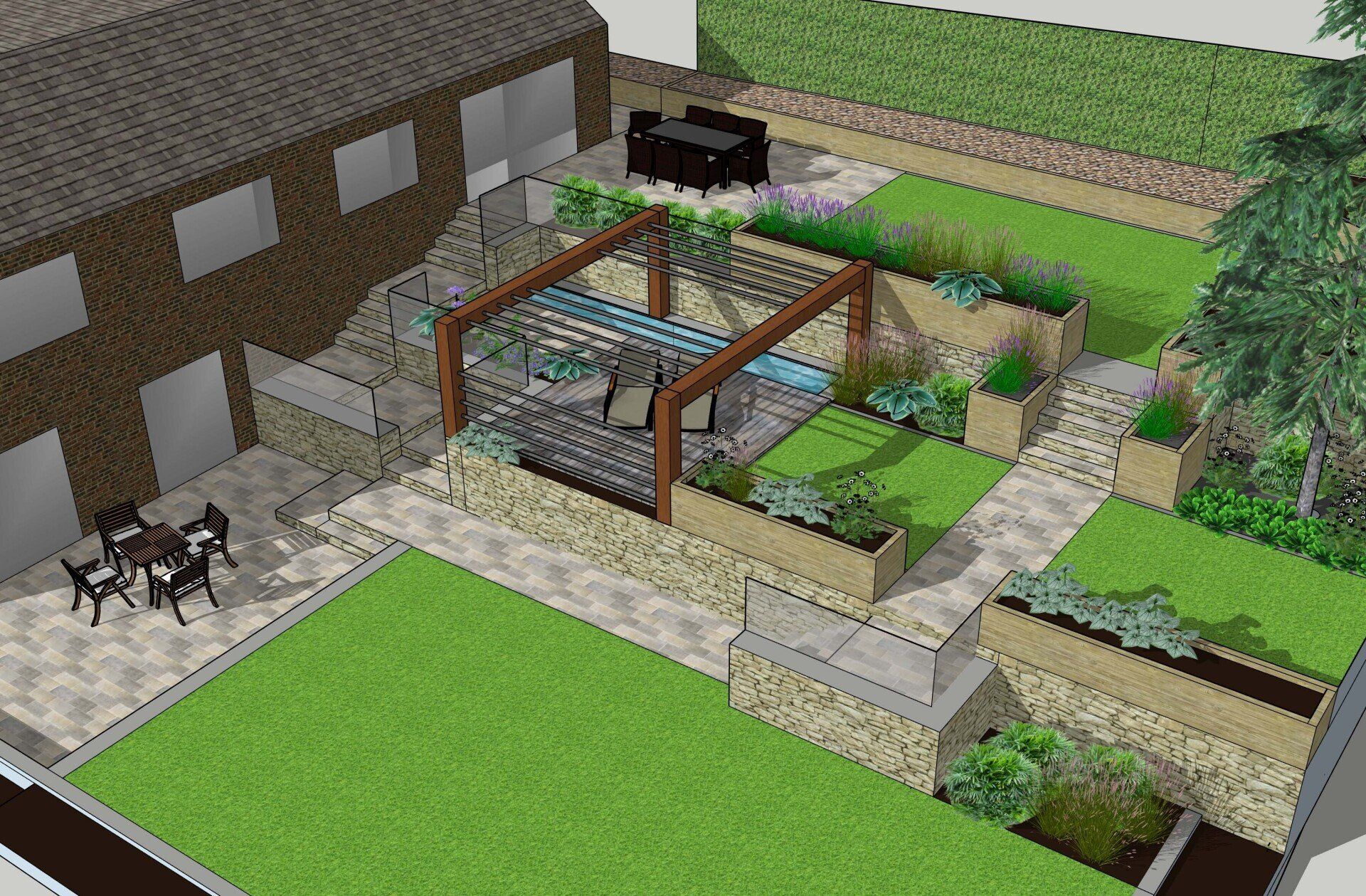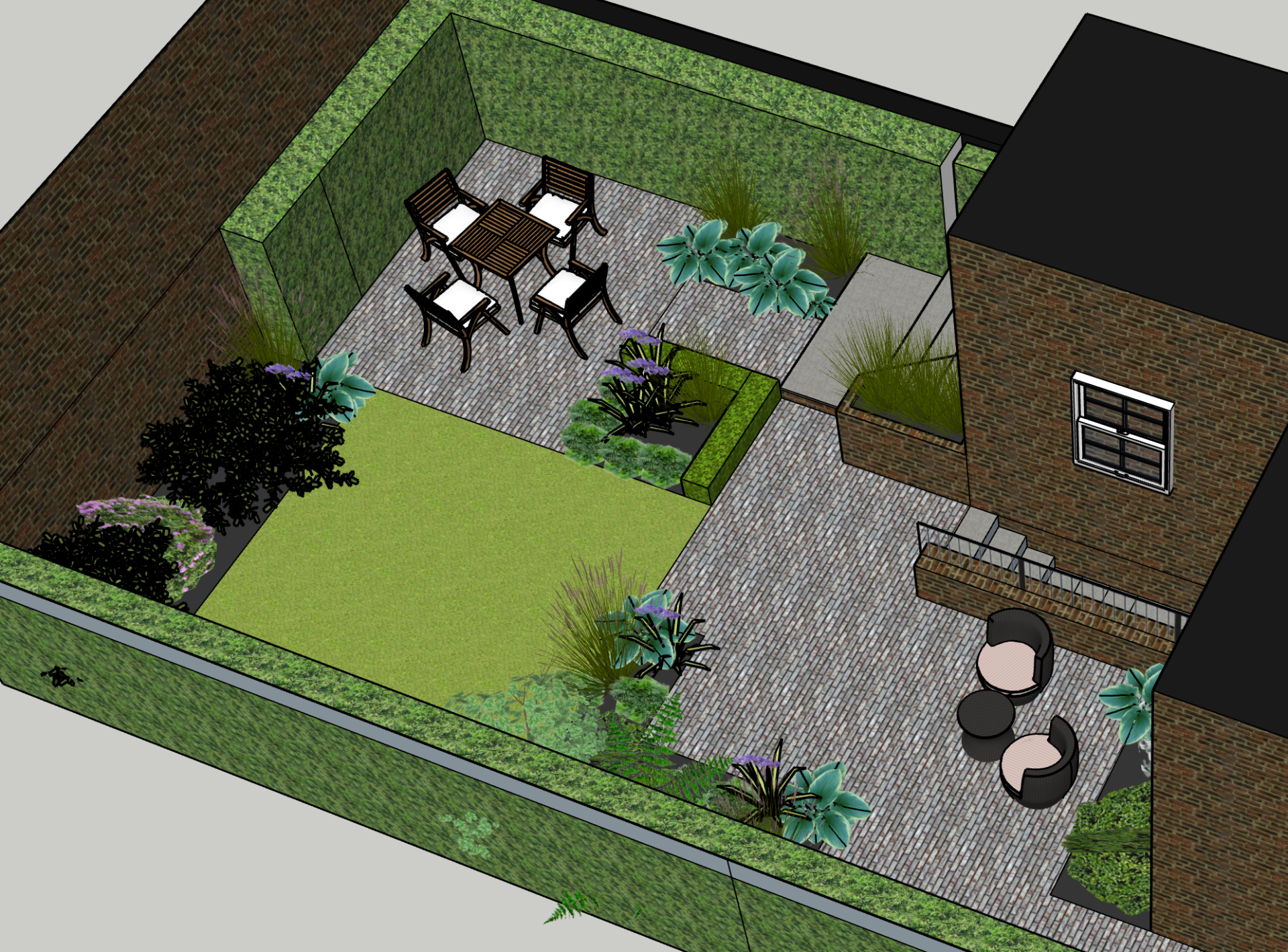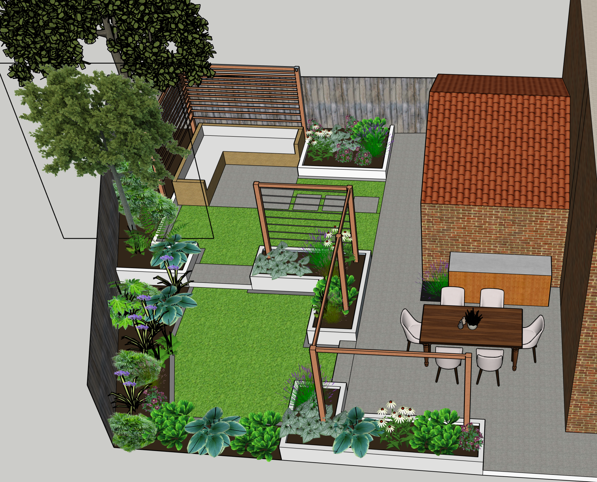This border is moist clay soil with occasional flooding. Its in semi shade, but there are lots of plants tat think its a lovely spot. Here you can see Hellebores, Brunnera and Astrantia combined with Dryopteris ferns, Actaea simplex ,Aconitum arendsii and Libertia chiliensis. They take you through the season with plenty of different textures, foliage colour and flowers.